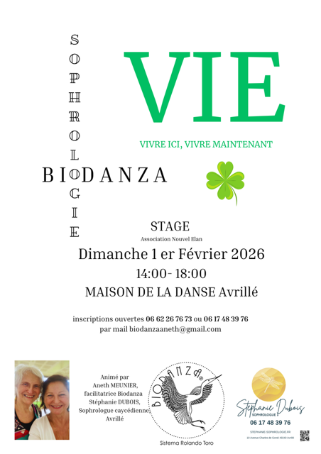 C'est ce que nous vous inviterons à vivre au cours de cet après-midi, avec la Biodanza, renforcée par la puissance de la sophrologie.